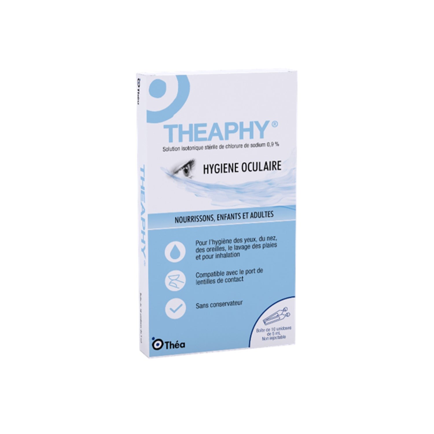 Théa Theaphy Solucja Izotoniczna 10x5 ml to wyrób medyczny produkowany przez Théa, który występuje w postaci sterylnej roztworu izotonicznego, idealnego do płukania oczu. Roztwór ten składa się z chlorku sodu i oczyszczonej wody, co zapewnia delikatne nawilżenie i skuteczny proces czyszczenia oczu.
