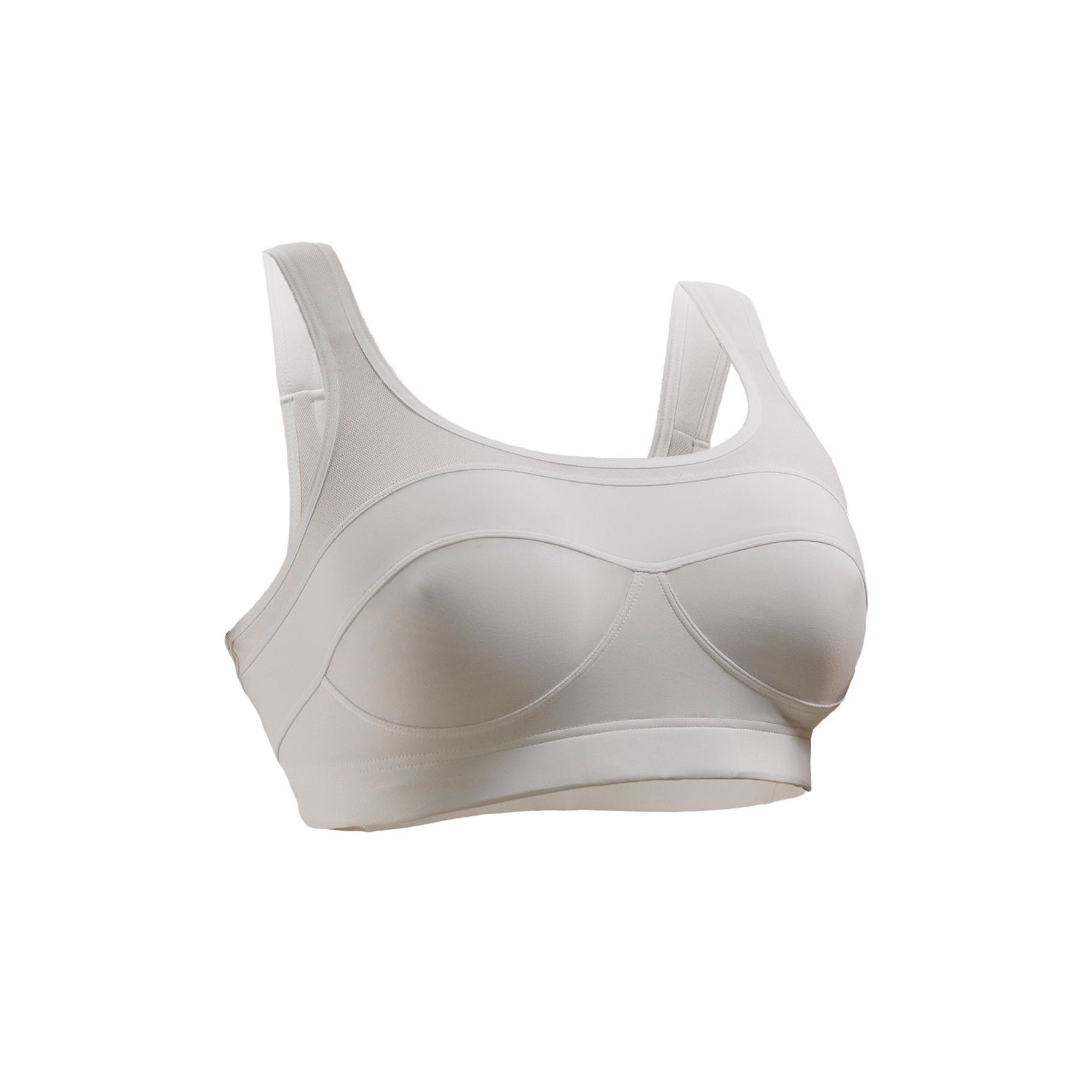 Sportowy top, wykonany z zintegrowaną, wzmocnioną taśmą kompresyjną i anatomicznym dopasowaniem, które jest wskazane, aby zminimalizować pionową ruchomość biustu i sprzyjać koncentracji podczas aktywności. Materiał jest oddychający, co pozwala na odparowanie potu.
