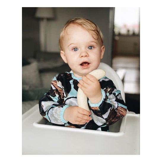 Chusteczka dziecięca z poliestru, nieprzemakalna. Projekt z długim rękawem, unisex i jednolity rozmiar. Pomaga chronić ubranie i skórę dziecka przed wylewaniem jedzenia i napojów. Wzór z tropikalnymi kokosami. Przeznaczony dla dzieci od 6 miesiąca życia. Nie nadaje się do prania powyżej 30 stopni C.