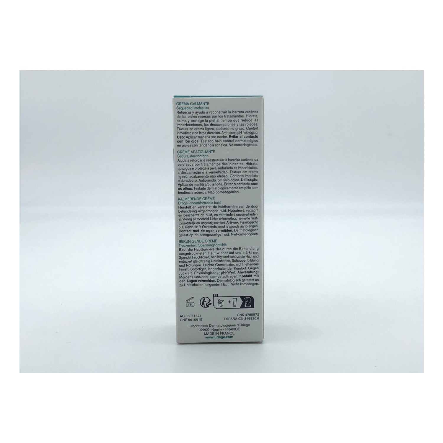 Opracowany na bazie opatentowanego TLR2 REGUL przez Uriage oraz z ekstraktem z figi barbarzyńskiej, który łagodzi skórę, Cerasterol-2F, który wspiera naprawę bariery skórnej oraz składników aktywnych, które utrzymują nawilżenie.