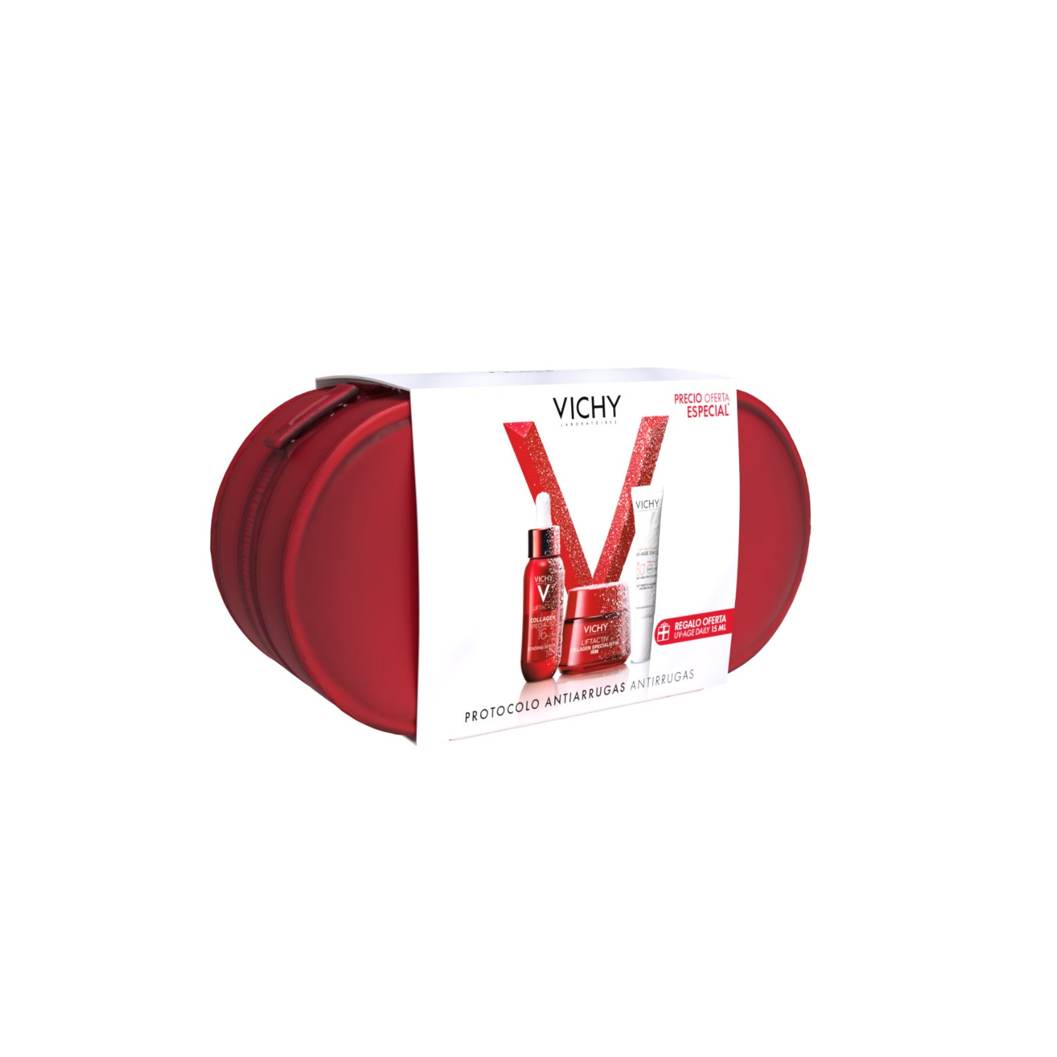Vichy Pack Neceser Protocolo Antiarrugas 50ml + 30ml + 15ml to kompleksowe rozwiązanie do pielęgnacji przeciwstarzeniowej, zaprojektowane w celu zwalczania widocznych oznak starzenia. Ten zestaw zawiera trzy kluczowe produkty: