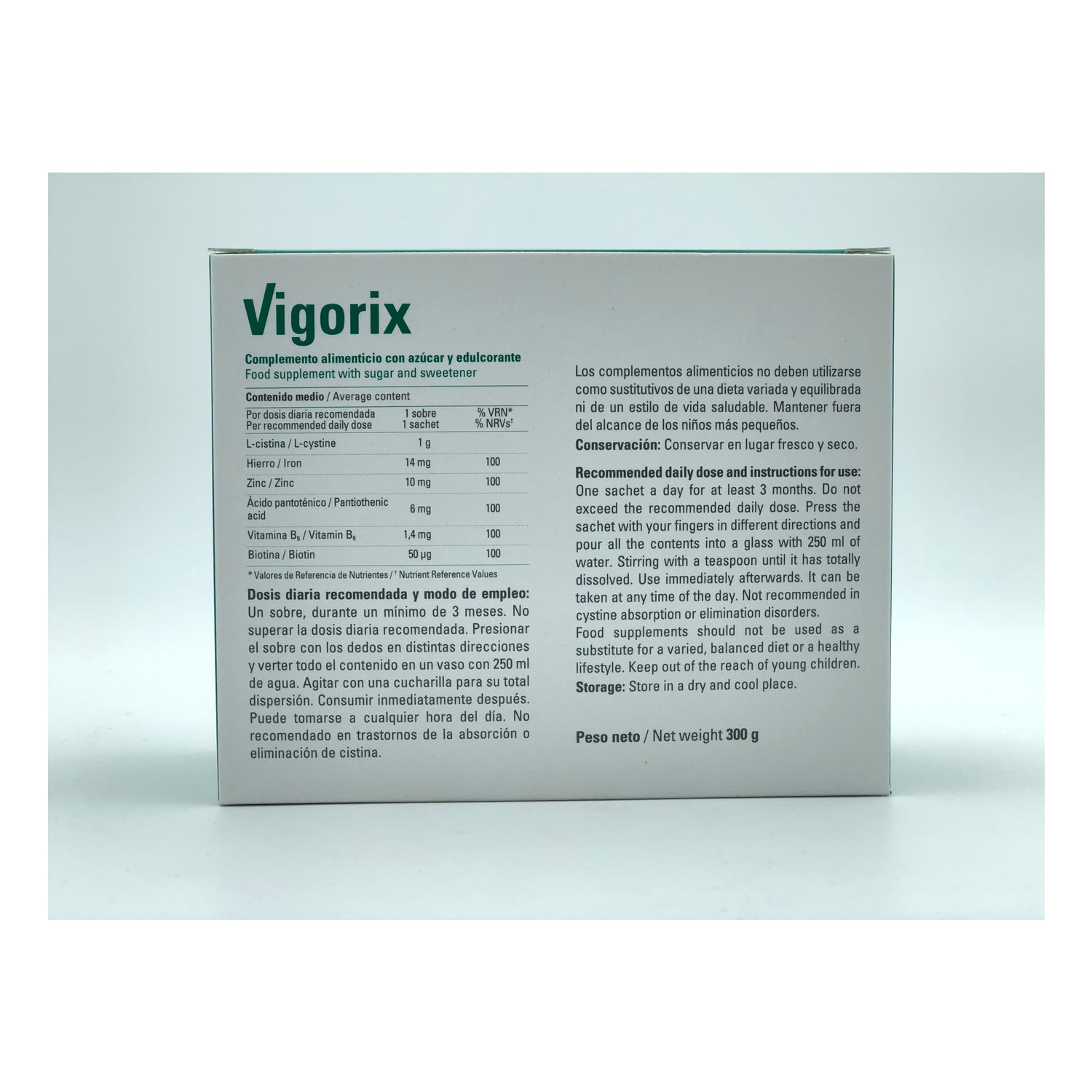 Vigorix to suplement diety, który pomaga wzmocnić włosy z korzenia i stymuluje produkcję keratyny do leczenia łamliwych paznokci. Jego formuła zawiera L-cystynę, kwas pantotenowy, witaminę B6, biotynę, żelazo i cynk.