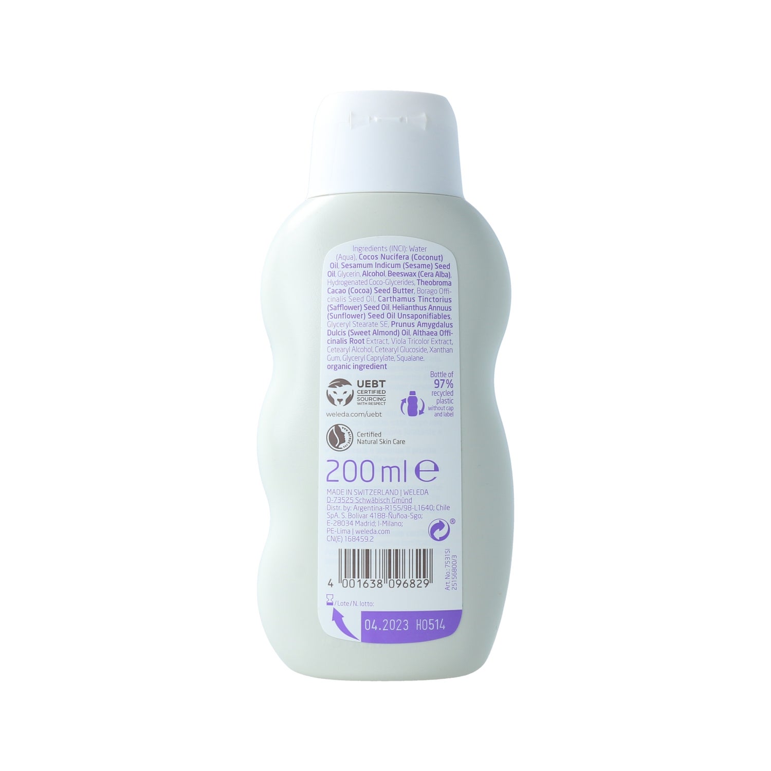 Weleda white milk body milk to emulsja, która nawilża, uspokaja i chroni peeling skóry po kąpieli. Dzięki swojemu spokojnemu składowi łagodzi świąd wywołany podrażnieniami atopowego zapalenia skóry.