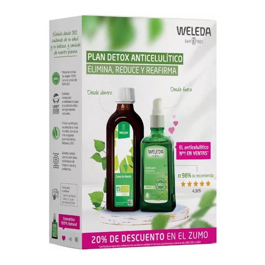 Weleda Pack Detox Olejek brzozowy 100ml + Sok brzozowy 250ml to zestaw, który ma na celu wspieranie oczyszczania organizmu. Ten pakiet zawiera: