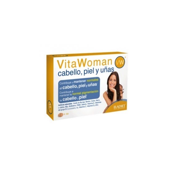Vitawoman to suplement diety, który pomaga utrzymać skórę, paznokcie i włosy w dobrym stanie . Podczas gdy cynk i witamina B8 umożliwiają prawidłową pigmentację włosów, witaminy A, B2 i B3 pomagają utrzymać prawidłową skórę. Ponadto jego skład zapewnia również zdrowe i mocne paznokcie dzięki selenowi i cynkowi.
