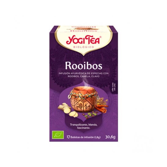 Yogi Rooibos Tea Bio 17 kopert Ajurwedyjska mieszanka ziołowa, w której słodki aromat herbaty rooibos harmonijnie łączy się z aromatycznymi przyprawami, takimi jak cynamon, imbir i goździki.