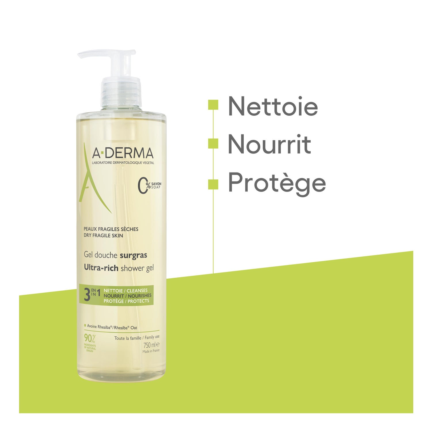 Żel pod prysznic A-Derma to super miękki środek czyszczący, który ma wiele właściwości do codziennej higieny naszej skóry. Uzyskaj: