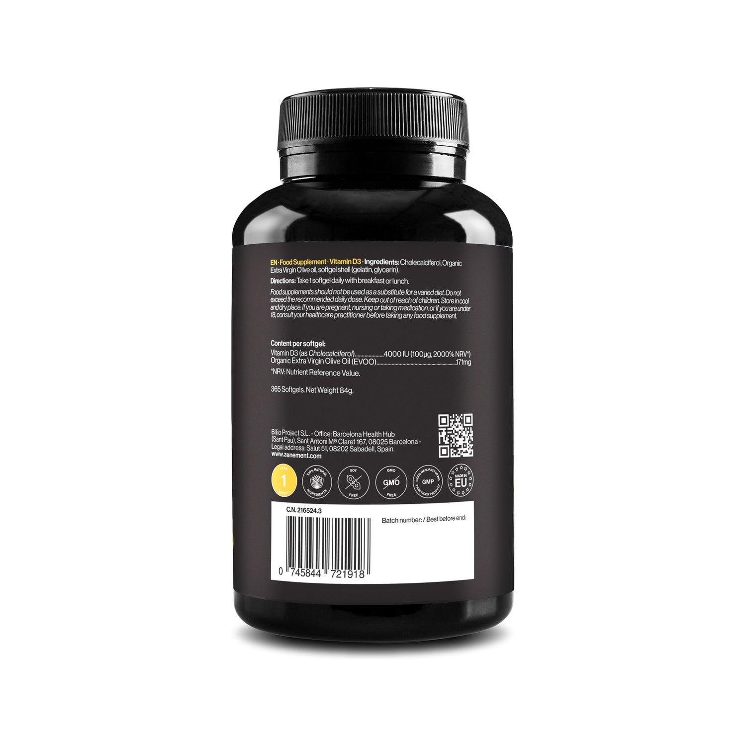 Suplement diety na bazie witaminy D3 naturalnego pochodzenia. Przyczynia się do prawidłowego wchłaniania i wykorzystania wapnia i fosforu w celu utrzymania zdrowych kości. Witamina ta bierze udział w prawidłowym funkcjonowaniu układu odpornościowego i współpracuje w procesie komórkowym jako adiuwant zdrowego starzenia się. Pomaga utrzymać prawidłowy stan krwi, jednocześnie stymulując ochronę komórek przed stresem oksydacyjnym. Nie zawiera konserwantów, barwników, glutenu, produktów mlecznych, soi ani substancji słodzących.